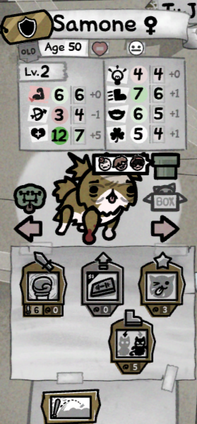 >>732913851When you unlock Act 2 it's time to kinda start thinking about breeding.General low-maint method is:>Keep all your retirees in a room with stimulation and comfort as high as you can crank it>Keep all your kittens and fresh cats in another room with comfort as low as possible so they fight often and gain extra stats before they're sent out on their runs (you can mulch the losers who get injured/die)As you unlock more rooms you can more finely tune your breeding programs (keep all your strong cats in one room, keep all your smart cats in another, etc.)Every once in a while add a stray to the mix to keep the gene pool diverse and reduce the risk of birth defects.