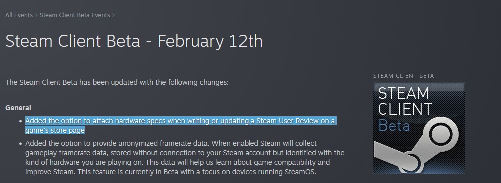 But if you're schizo to the point of hardware specs being a private matter then you shouldn't be using steam at all, or 4chan for that matter.