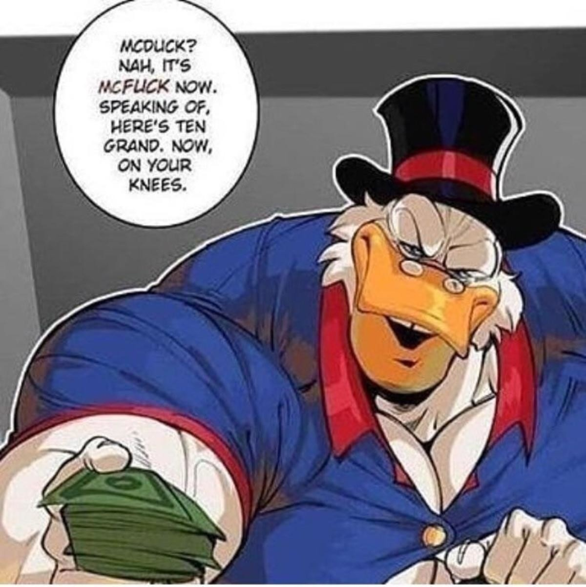 perhaps McFuck handles his money differently, but Scrooge would negotiate you down to the minimum amount of money necessary to get down on your knees for him. And I bet it's a lot lower than you think it would be!
