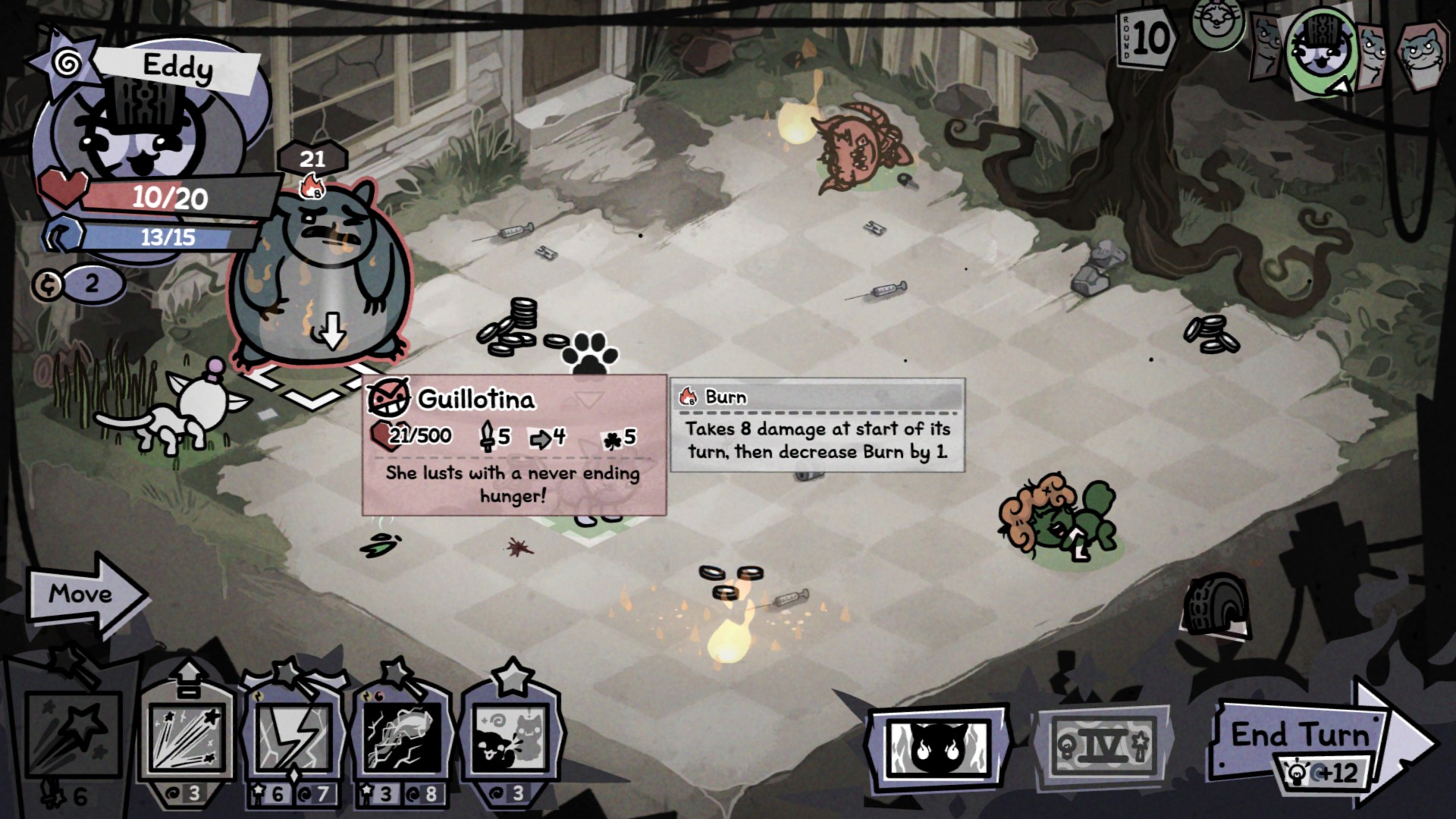 You little baby. I have a thief back home who gets +1 damage when they get coins, and they can steal 3-5 coins from a target with a move. They wore the hat that makes them doublecast 1/2 cost spells and it's a 3 cost spell. I have them wear the beard that doubles the effect of their hat. I teach them twice with a mage so it becomes a 1 cost spell. They steal hundreds of coins on their turn. They backstab guillotina turn 1 for 700 damage on a crit.