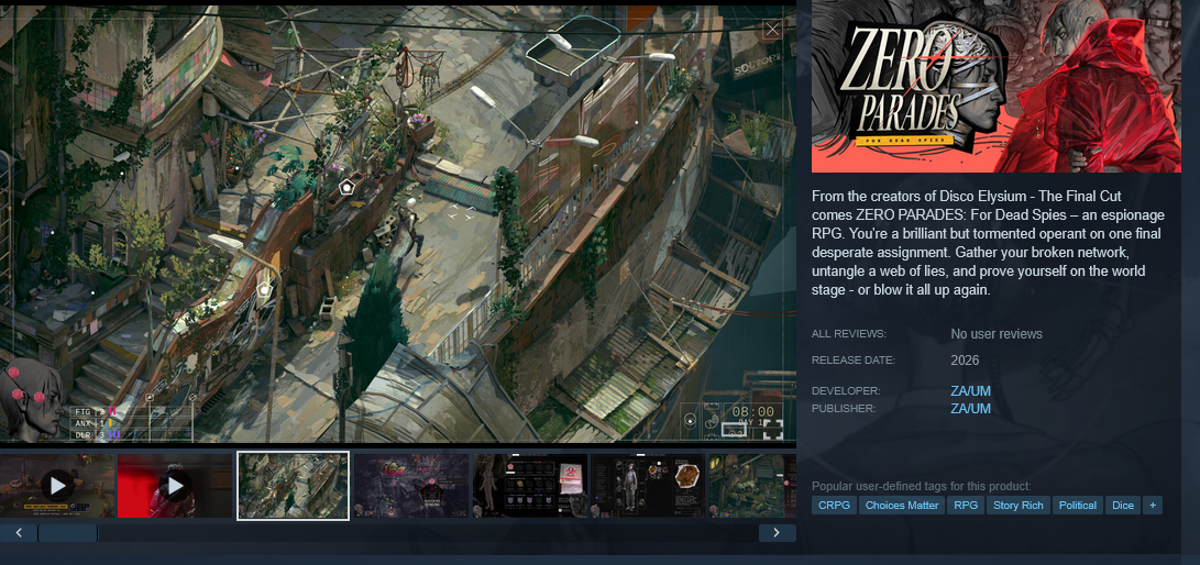 >>733012609Speaking of Disco Elysium https://store.steampowered.com/app/2863680/ZERO_PARADES_For_Dead_Spies/Are they actually the creators of DE? I didn't follow the drama, but I thought the original creators got kicked out of the studio.
