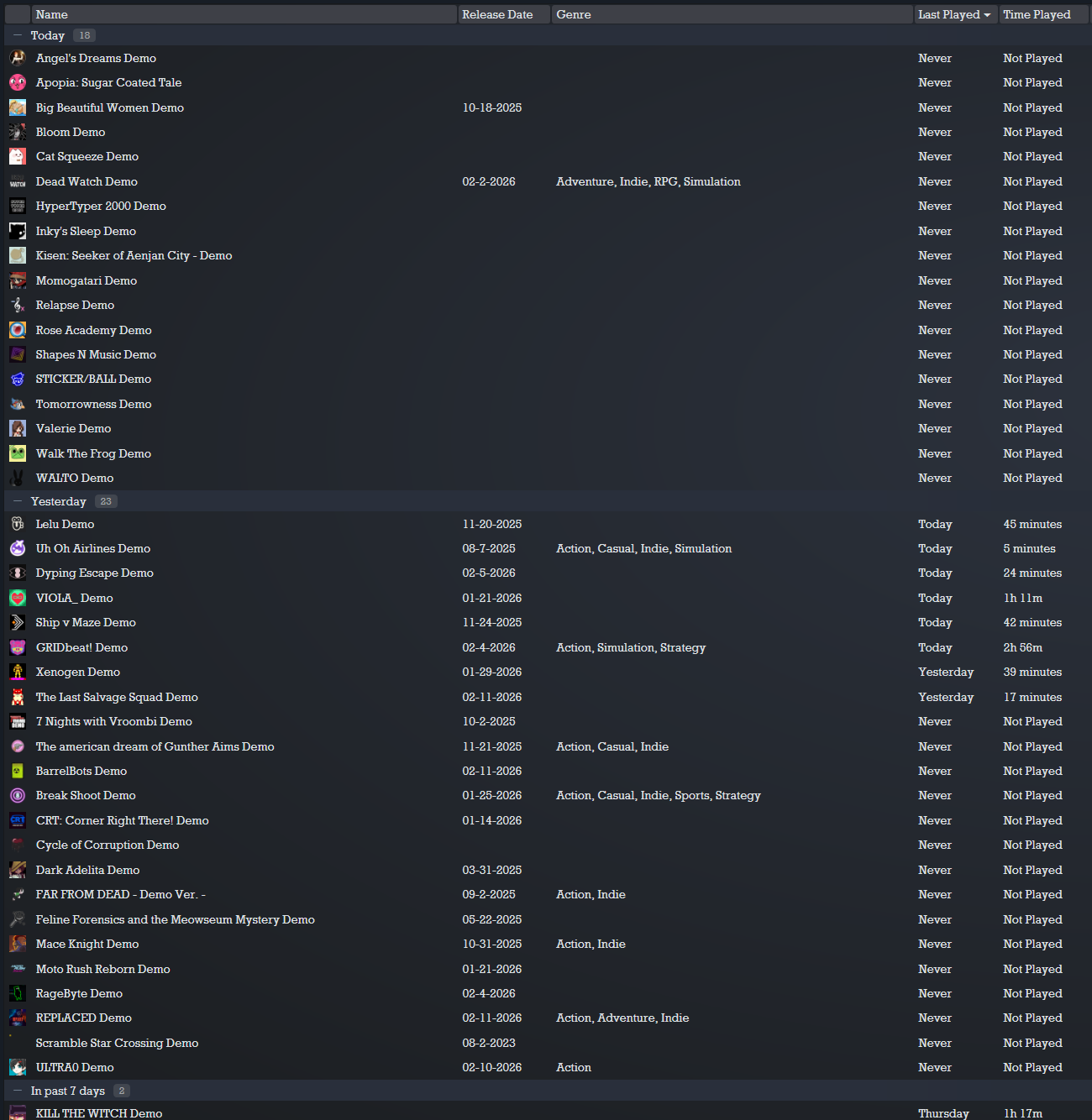 https://store.steampowered.com/app/2900870/Yuma_Nest/https://store.steampowered.com/app/2871520/Deep_Dish_Dungeon/https://store.steampowered.com/app/3441990/Withering_Realms/https://store.steampowered.com/app/3998510/Cyclopean_II_The_Dreamlands/store.steampowered.com/app/3817250/CICADAMATA/https://store.steampowered.com/app/4078600/PiPu_Party/All the stuff I found that I thought looked at least somewhat interesting