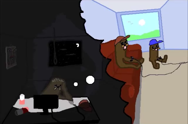 this is my final drawingI enjoy making these little drawings to joke around, I really do, I've been feeling a bit down lately but these events always cheer me up because we get to shitpost together also it was a surprise that my darkest dungeon parody was printed on an actual shirt by an actual organizer, funny stuff