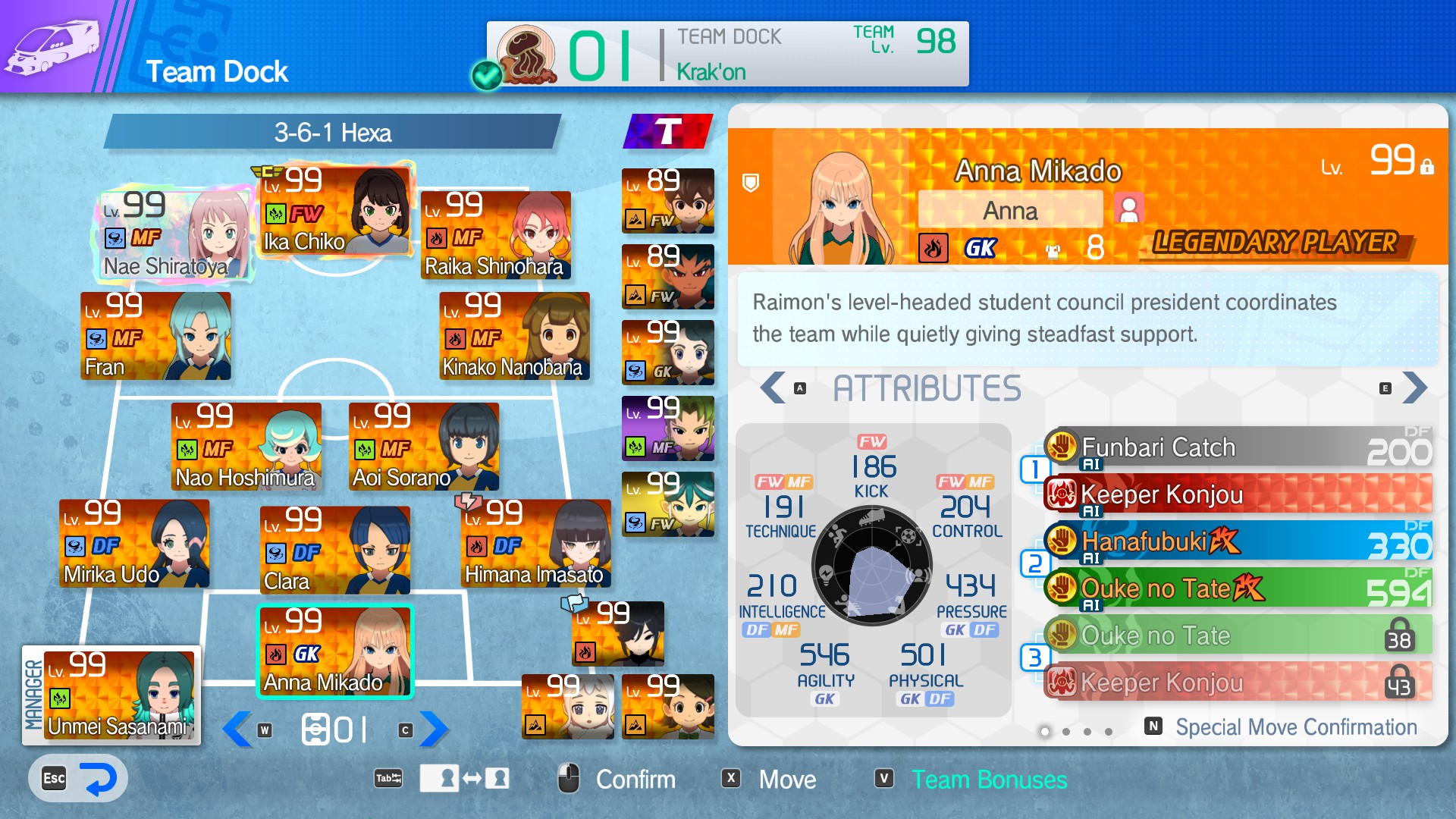 Still farming beans but I think I'm happy wih the state of my team right now, I probably should replace Macure with Aphrodi but eh Also post team