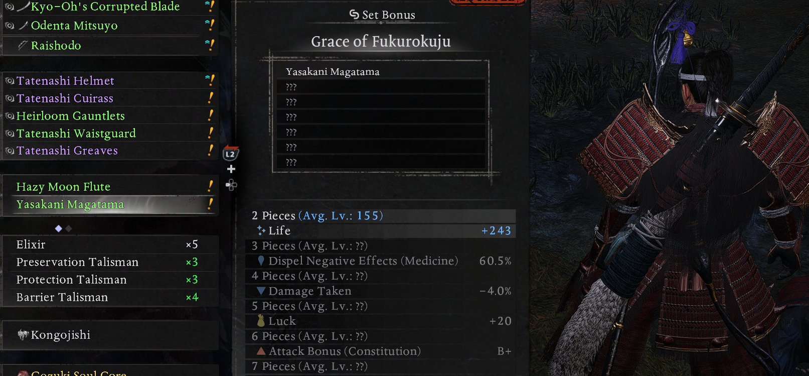 how good are the >attack bonus (stat) A/B/B-set bonuses on graces?i feel like i'm struggling to find what build i want to actually make for samurai, i'm just going with the minamoto/general of ruin set because of the frost moon damage and ki damage on deflect, but it has>attack bonus (strength) B+on it, and i'm wondering if its worth trying to make it work, since it drops me to B toughness instead of A if i go all the way to 6 pieces, even with yasakani magatamai played basically the entire NG+ with kintaro and it felt easy