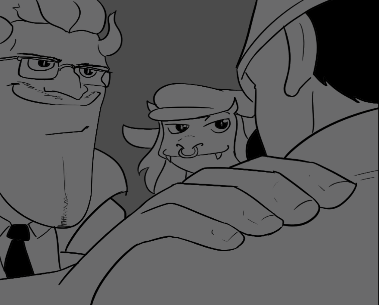 I think it would be funny if Cinnamon had black hair and looked nothing like Pagie, and Vyper just has horrible vision.