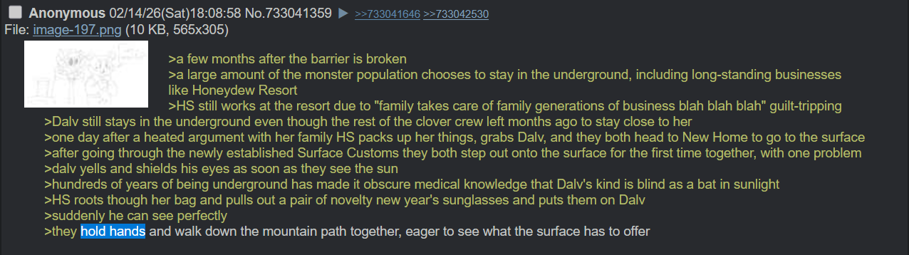 >>733171521Mind not the Sharteen, I'm looking forward to future art deliveries.>>733171392I suppose our flights of fancy are the heart of these threads in a way.