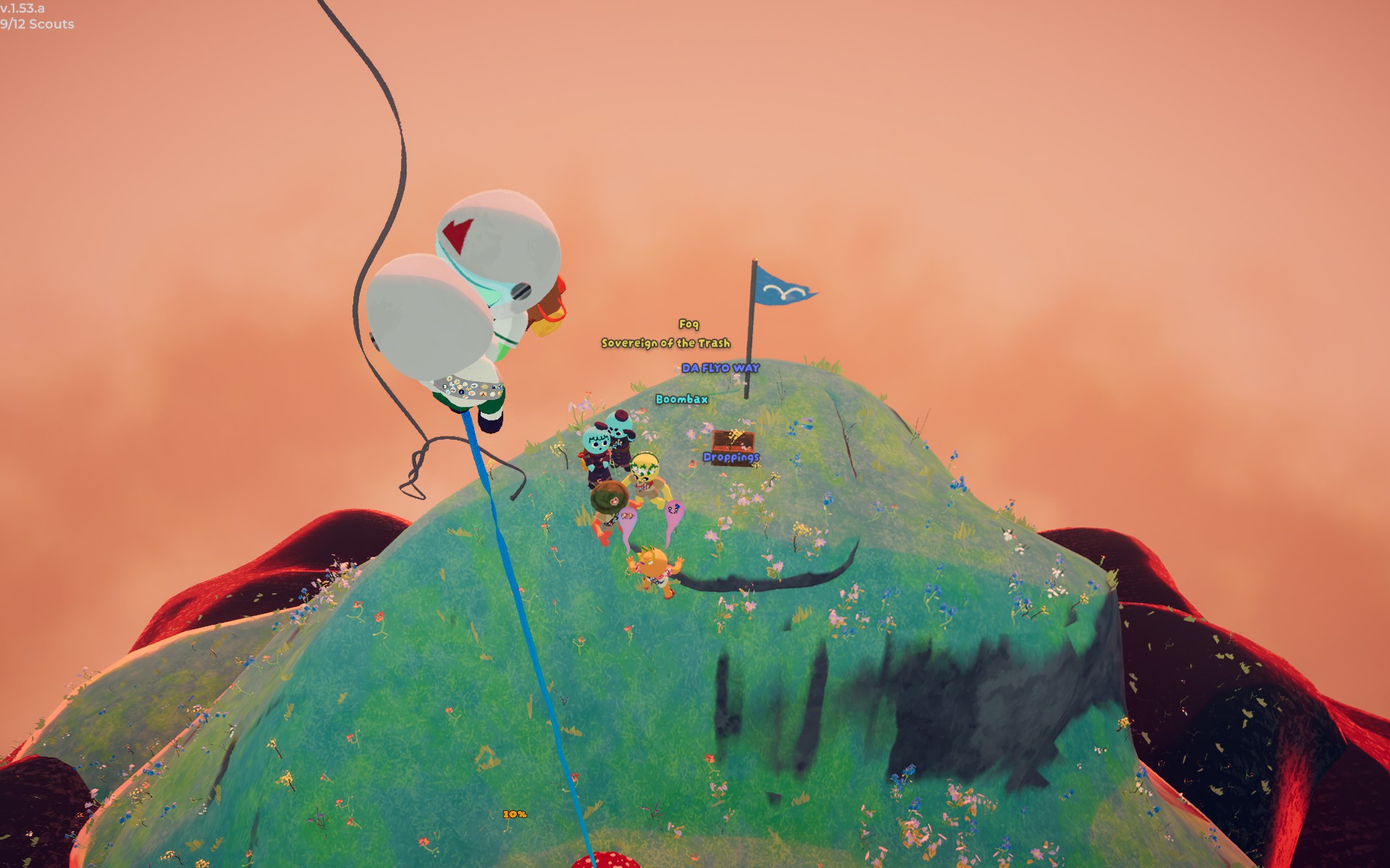 Soulmates got an update and I want to test if something works:SoulMates v0.3.1 required (https://thunderstore.io/c/peak/p/Wesmania/Soulmates/)10 scouts / 5 pairs1.35xa4+For anyone who didn't get a chance to join a soulmates lobby yesterday, or for those who wanted more. I found it quite fun but only got to play it once, so here's one more chance for anyone who still wants a go at it.>steam://joinlobby/3527290/109775244189132208/76561198256098552We'll start with as many pairs as we have after 15 minutes, tops, or when full.