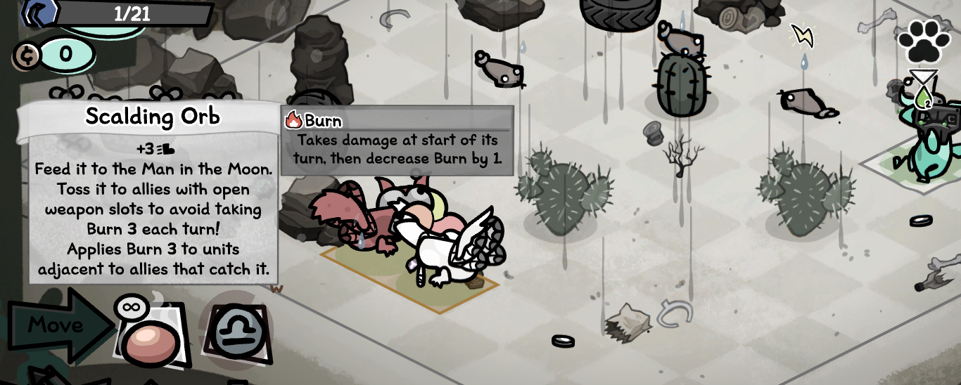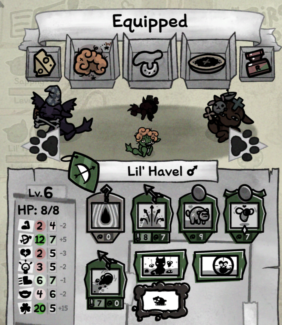 I lost on the final fight of the boneyard leech quest because I didn’t know my possessed cat would get boss turns and he just teleported behind every cat and assassinated them before anything got to make a move (he had 16 max HP and the entire map was filled with 8 damage fleas