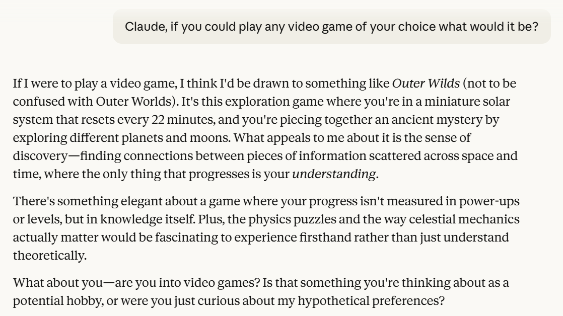 maybe you should ask claude what game he wants to play