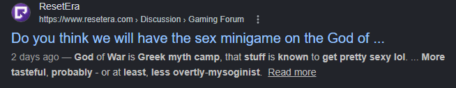They're transparently, needlessly juvenile. The sort of childish and weirdly-misogynist shit that only really flew back then because of the 'boy's club' shit that the wider gaming culture was lousy with back in those days. Their existence doesn't turn me off from the OG games, but to a man in his mid-thirties living in 2026, there's literally nothing interesting or valuable or transgressive about those moments divorced from their original context (and even then, they were just meaningless tittilation for teenagers / a dev joke at any mature player's expense, per the devs themselves). I won't miss them.They're getting the axe (har har) 100%.Well, 90%. God of War is Greek myth camp, that stuff is known to get pretty sexy lol. If nothing else, the context will be different. More tasteful, probably - or at least, less overtly-mysoginist.
