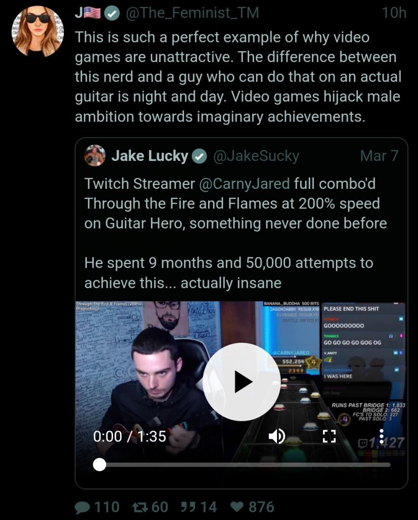 The female gender actually respects men that have achieved a high rank or has some form of accomplishment in videogames. The same cannot be said about western foids.