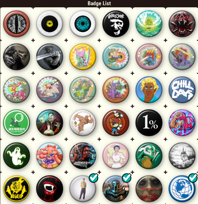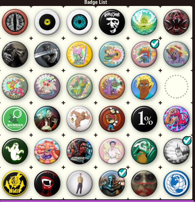 >>733225510Another cool part of the badges is that every one of them has their own description with some lore implications.Like the one at the bottom where its just a dude standing was the town Deadford's serial killer