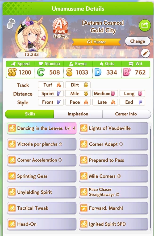 >>733277396Every Uma gives compatibility score based on individual character value and number of races won shared between legaciesIf an Uma is their own grandparent then both scores are set to 0 for that grandparent branch, lowering the odds of any sparks to during inspiration to almost nothing. You can even miss 3* blue sparks