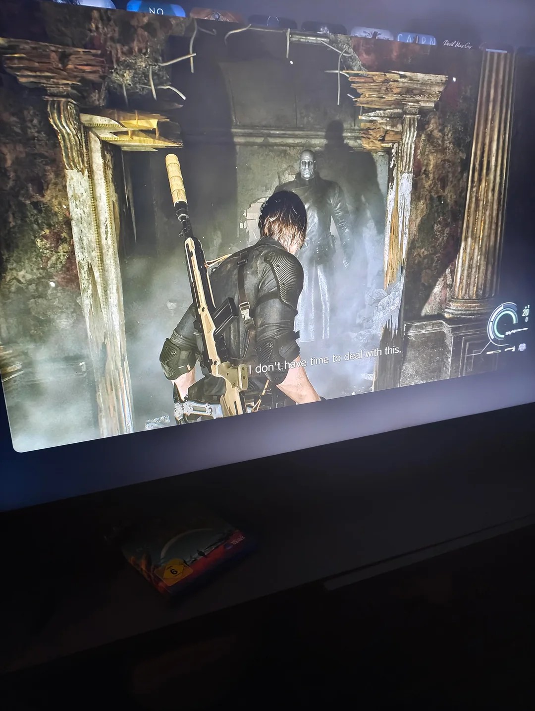>Me playing Leon's action sections in first person with minimized brightness
