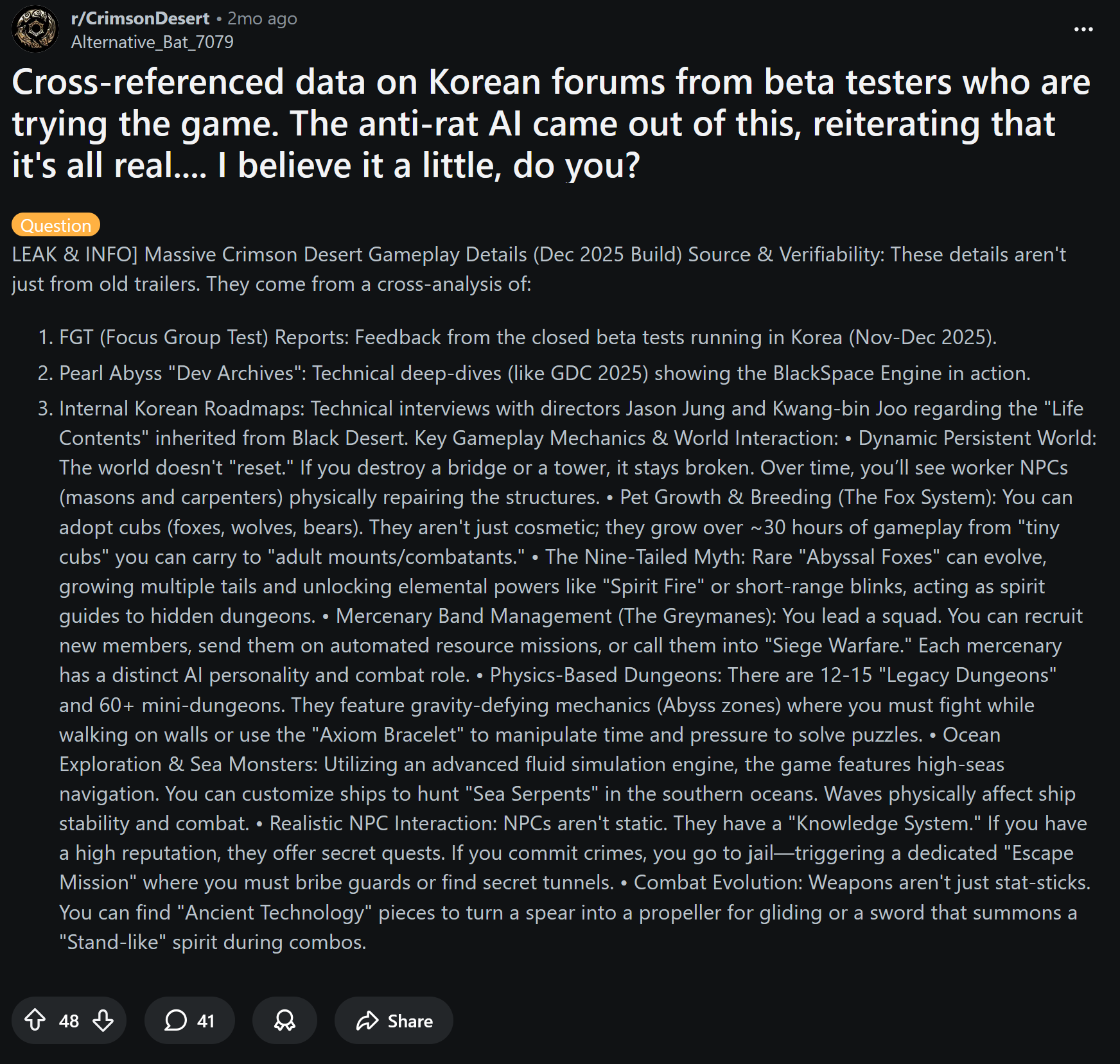 For people who have never played Black Desert this might seem "too good to be true". But this game is literally just a suped up single player Black Desert. The engine, animations, action, it's all borrowed from Black Desert which the dev team has maintained for what, 10 years or more now? It's not that wild to me that with the resources at their disposal they can deliver a AAAA experience.