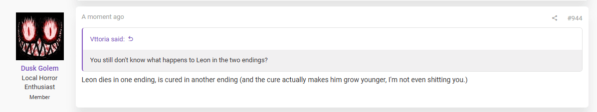 > Reads the Leon ending spoiler off Resetera