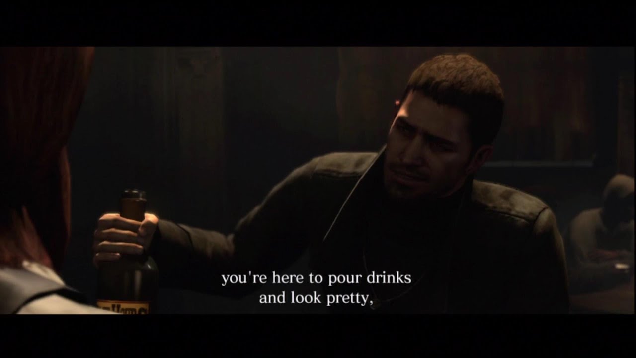 >>733316345>that would routinely out push any chance of chris having female fans toothat's entirely on chris' characterization, if you can even call it that. compare pic related scene to leon having a heart-to-heart with ashley in RE4 remake.