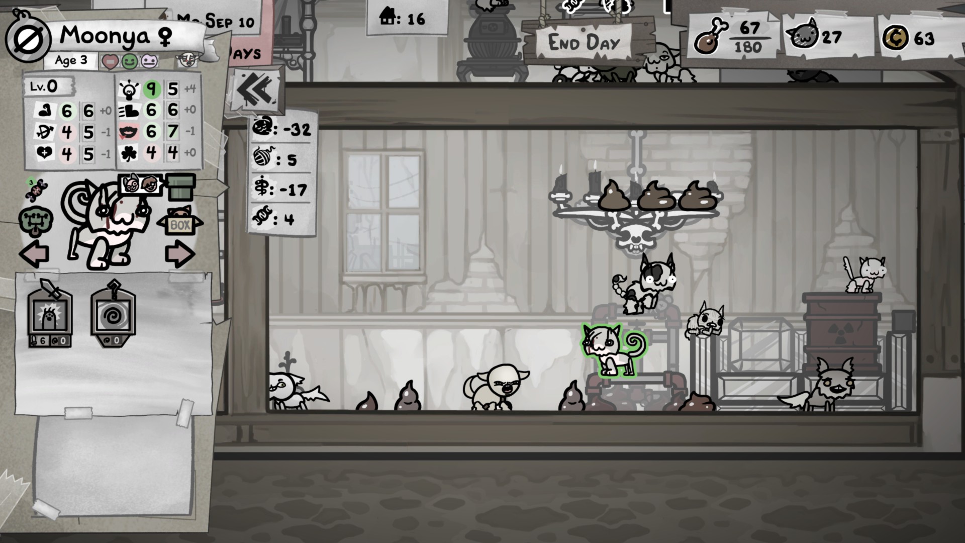 >>733342238Early on just keep all the ones with good stats in the same roomOnce you get 3 rooms you can start going for 7 in all stats/merging mutations
