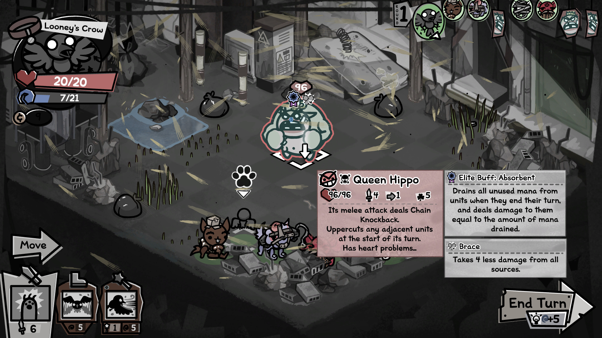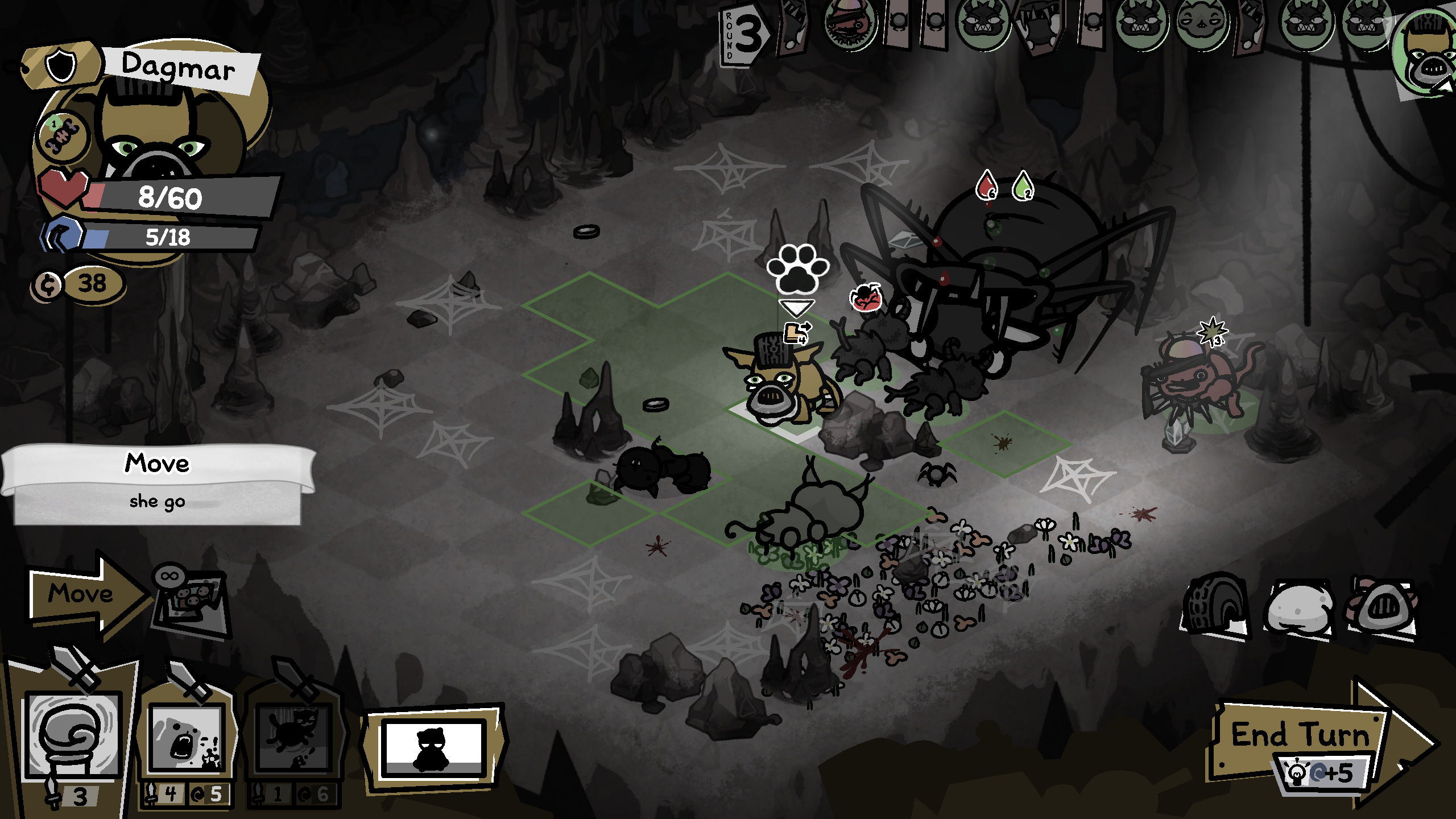 Man i suck at this gameGetting filtered by caves, the spiders heal more than i can damage. Tried a junkyard run instead and half my team was melee and getting chunked up by thorns on rusty catsI think my best option right now is several alley only runs to try and get some hardcounter items and hopefully some halfway decent cats