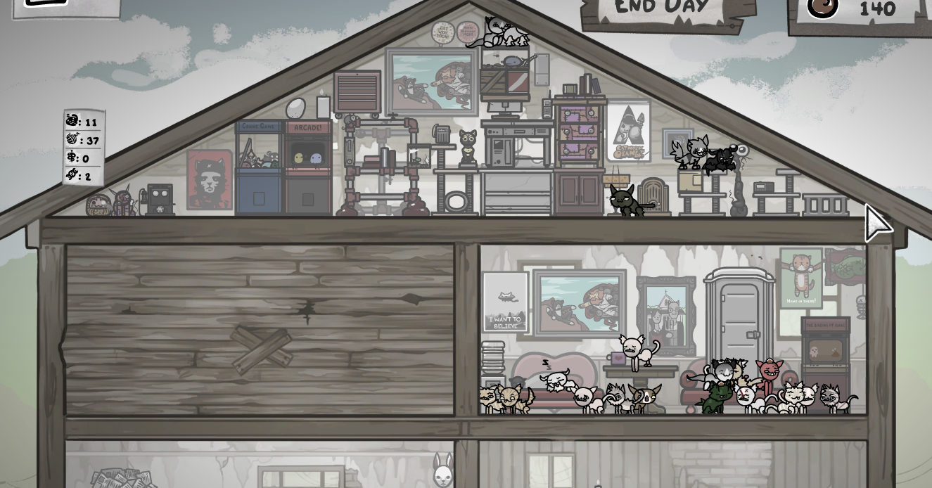 I really like the game but fuck it's so slow.I just finished a run that took me over 1 hour. It gave me 100 food and 70 coins, which did not even allow me to purchase a furniture, so all I did was breed some cats and that's it.Game could be a bit less shitty about money considering how expensive everything is.
