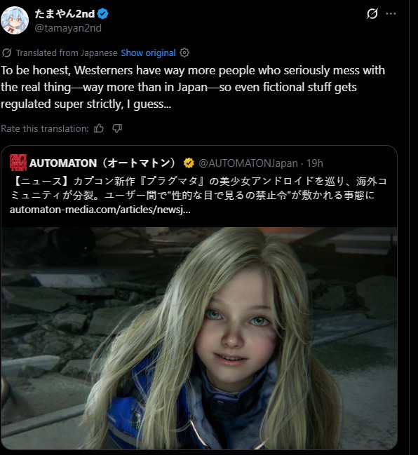 Saw a couple of Japanese tweets about this that went viral. Both were along the lines of: “White people defend underage pixels with their lives but elect actual pedos as president”