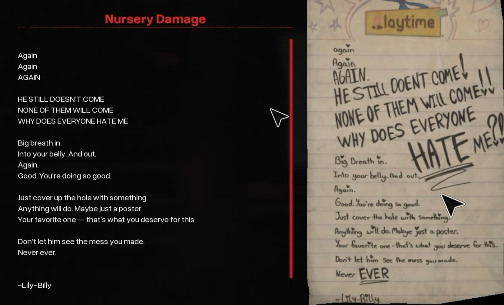 >>733414929So Lily was not always stuck in Sweet Street? I guess it's obvious if we assume some of the invisible writing is from her wandering the place.