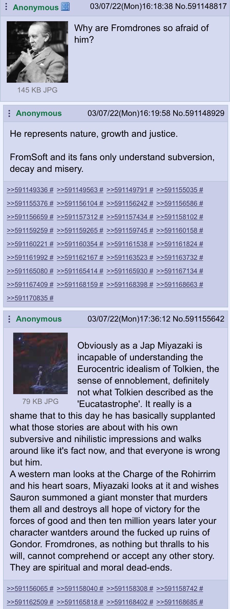 >>733466536>Dark Souls and Game of Thrones invented dark fantasy.You're even dumber than the weebs who attribute dark fantasy to the Japanese.Ever heard of a little character called Conan?