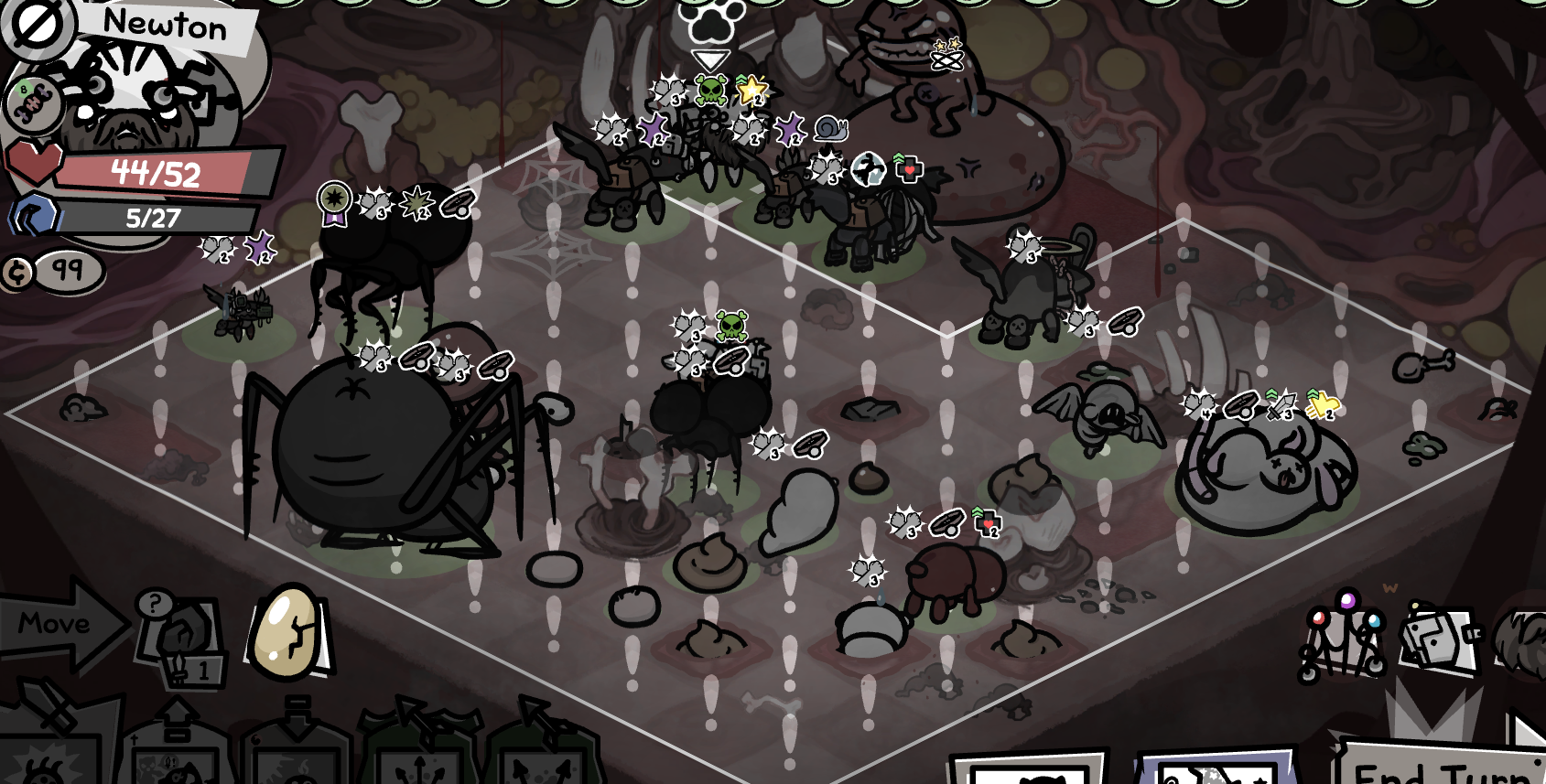 >blood frenzy gives an extra uncontrollable turn per kill>slow and steady gives an extra attack for each turn i have 0 spd>necrophage gives all stats up per corpsethis absolute unit could have solo'd so much shit if I had a way to reposition him. instead I had to tard wrangle him from killing my team