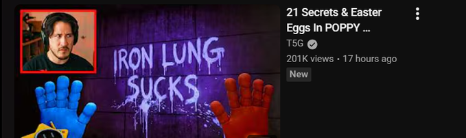 crazy how when iron lung came out mark was telling his community not to get mad at ppl if they didn’t like the movie and now he didnt like poppy playtime chapter 5 and suddenly he’s the only one who is not allowed to not enjoy a piece of media