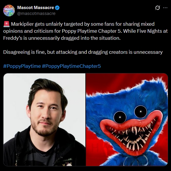>>733529494So much of their criticism can literally just be applied to other games or specifically other mascot horror games. It's so weird. Like FNAF is the epitome of all the things they say is wrong with PP