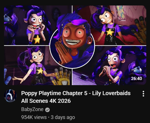 >>733542615>Almost a million viewsThis is also not the only video made about her with a lot of attention. Lily is the best part of chapter 5. Markiplier also praised her despite his negative review.