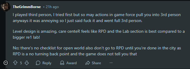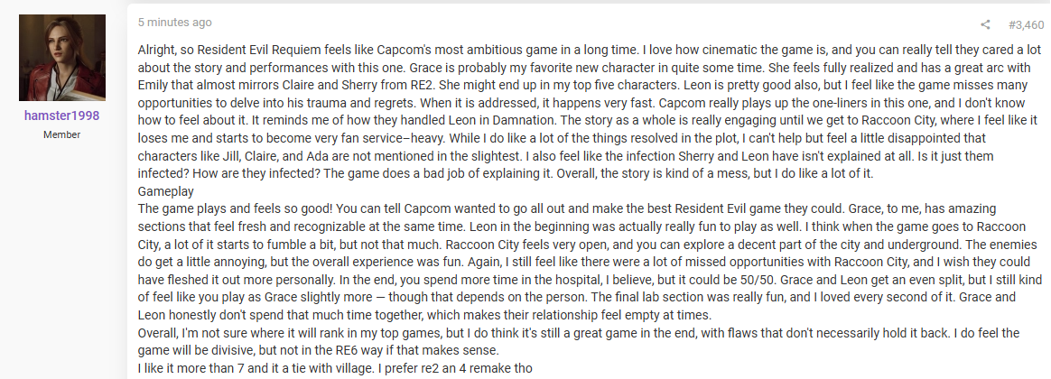 >>733489554This is so vague. >"The gameplay is REALLY FUN"Can't describe why at all. Can't even give a comparison to another RE game like it so people have context. I was honestly expecting to see "I had a blast!"