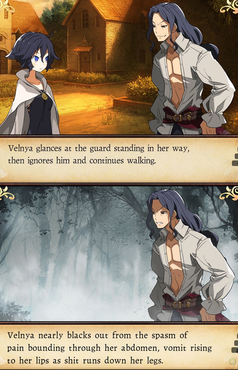 >>733500643Did you even play the first game?It literally took the time to slowly describe how Vel shat herself after getting raped