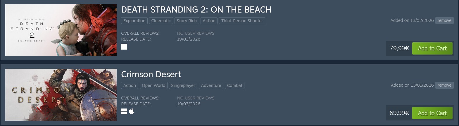personally i would choose crimson desert. i already own death stranding 1 and i have not played it yet so i couldnt, in good conscience, buy the sequel