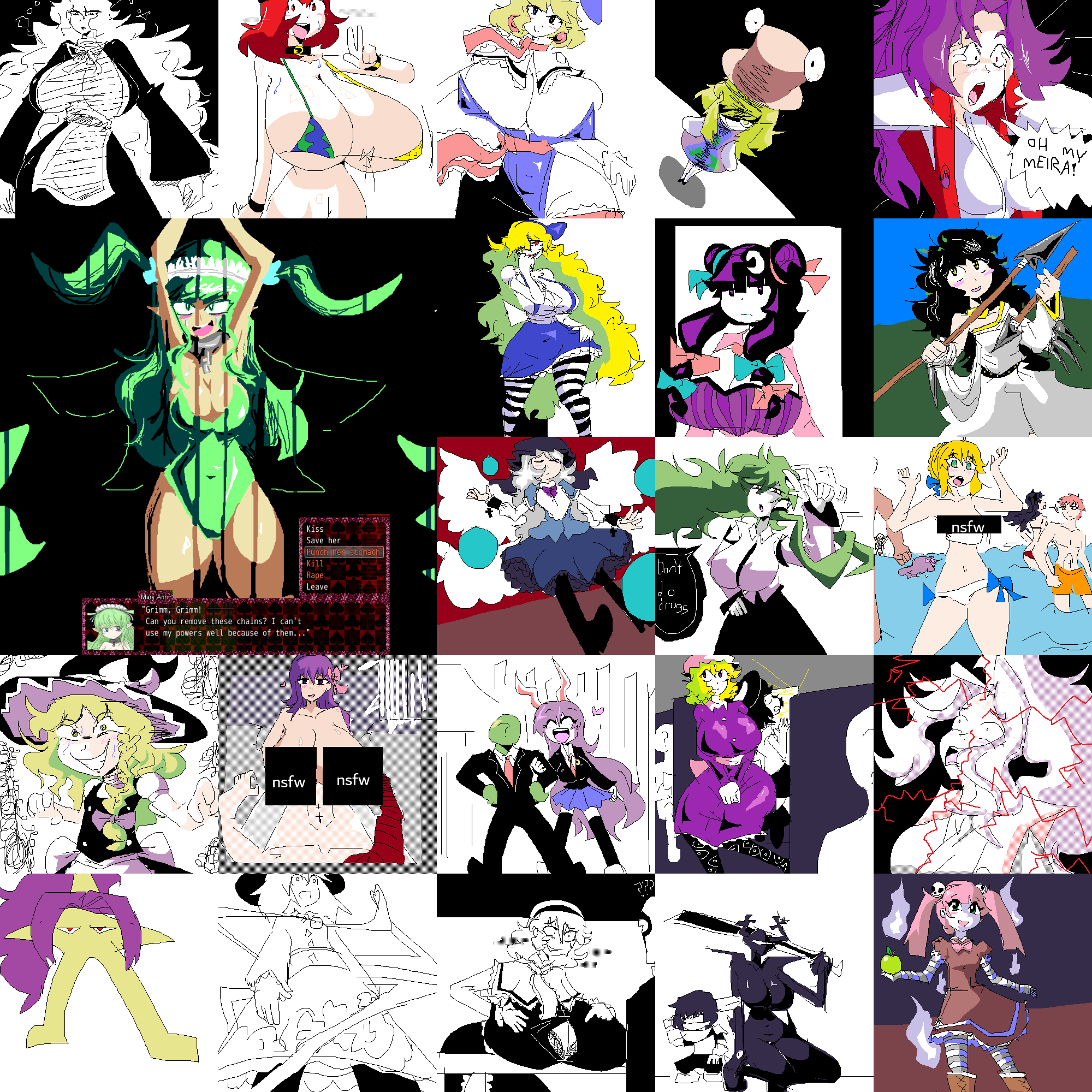 >>733528136The green girl on the left with the double sized drawing is from Black Souls. Both of the NSFW drawings present in this collage can be found uncensored in the /i/ NSFW image dump. >>>/i/827821