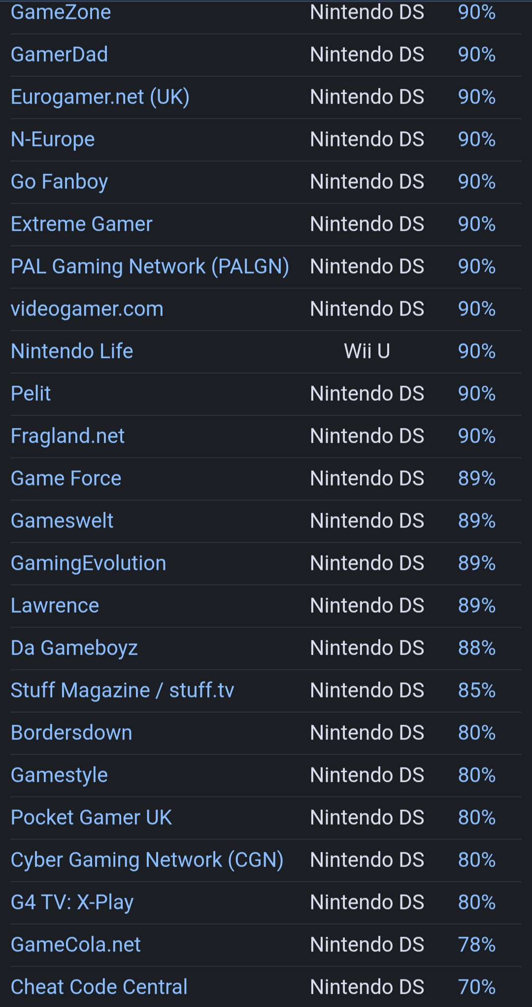 >>733545363Wrong pic, that's for advance wars, which averages 87 but xplay Gave it 80