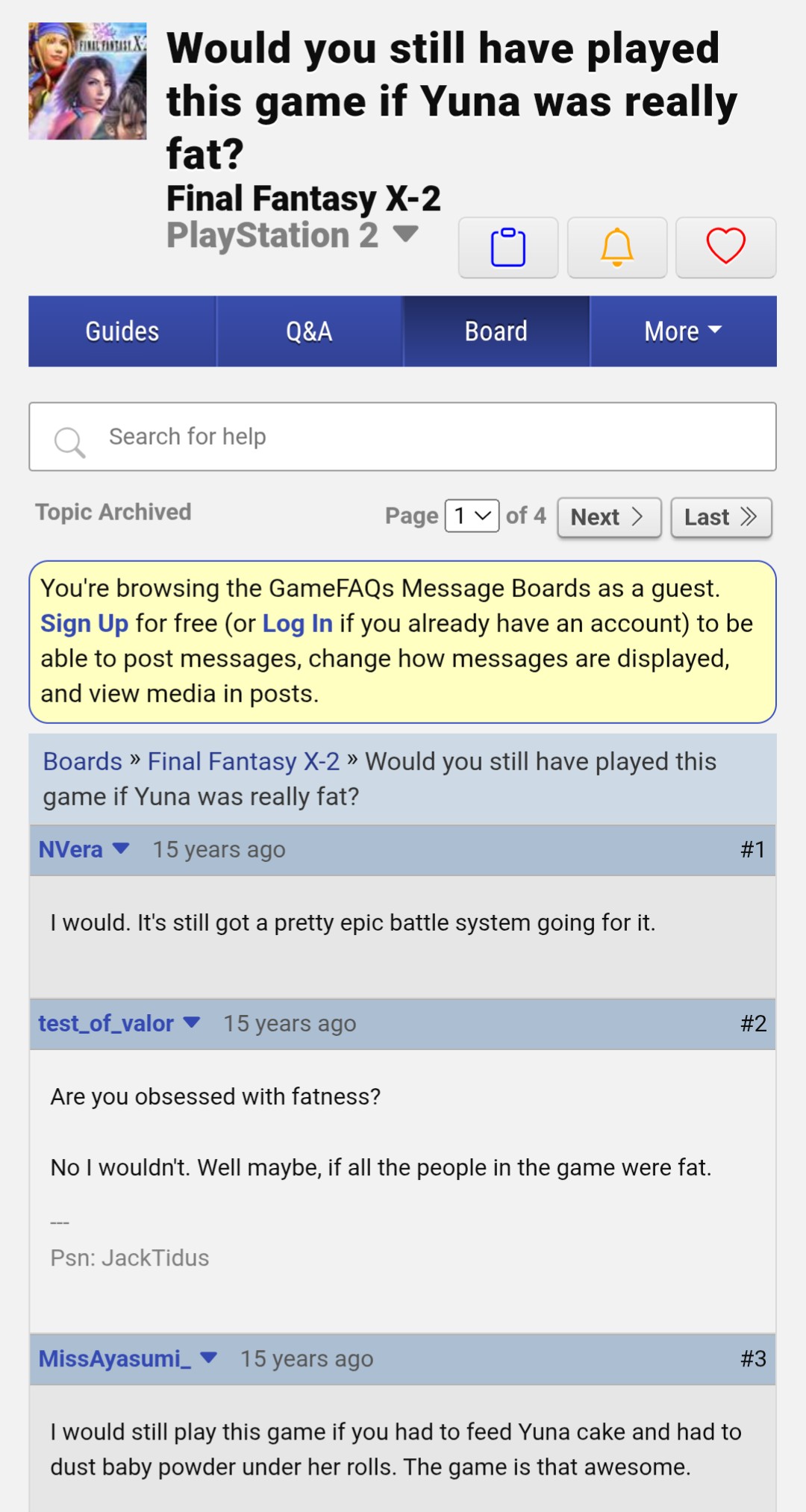 >>733537212>used to be considered an abominationX-Play: 4/5https://www.youtube.com/watch?v=1G-uE1Ogv98Gamespot: 8.1/10https://www.gamespot.com/reviews/final-fantasy-x-2-review/1900-6083743/IGN: 9.5/10https://www.ign.com/articles/2003/11/07/final-fantasy-x-2-3Gameinformer: 8.75/10>LINE BREAKNow that you're finished talking out of your ass, can we have a decent Final Fantasy X-2 thread?