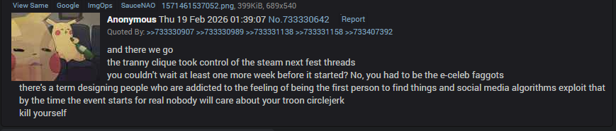 >>733557190all I want is for the agdg trannies to stop polluting the threads and ruining the steam next fest