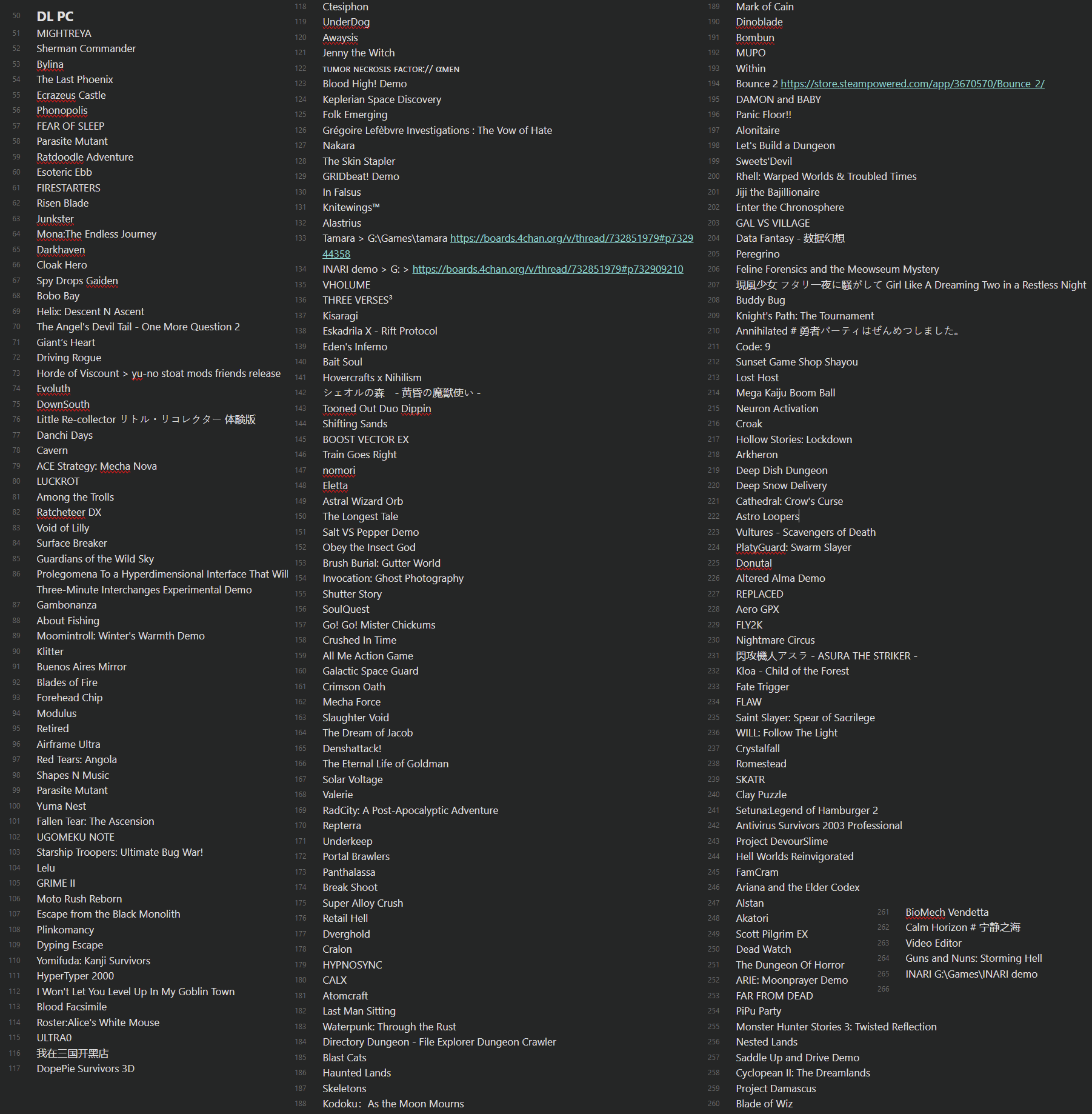 >>733553839no>VULTURES is a tactical turn-based survival horror, inspired by 90's survival horror classics. As an operative, scavenge the infested metropolis for materials and information that could cure the infection plaguing the world.>Heavy Metal Death Can is a Retro-Inspired Survival-Horror game set on a submarine in an alternate late-70s Swedish setting. Trapped beneath the ocean, you must fight against the terrifying Sludge which has turned your crew into Zombies. Look for survivors and uncover the truth behind the madness.>Play as a working shepherd dog protecting his flock and the only human who trusts him. As wolves draw closer, you must face the growing divide between the world you serve and the wild that calls to you. Herd sheep, track scents, and guard the farm across rugged northern lands.>Who are you? Why are you the only one who can hear this world weep? To mend it, or to end it? — The choice is yours.>Eagle Knight Paradox fuses fast-paced mecha action with slice-of-life storytelling. As Ian, defend the futuristic city of Comala 88 while building relationships that shape the world around you. Every choice matters—protect duty, or follow your heart.>Break the rules of solitaire in this atmospheric roguelike deckbuilder. Unleash forbidden sigils while the Jack of Spades begs for your help in secret. Forge game-breaking combos under the Joker’s watchful eye and uncover the truth behind the deck. Don’t investigate… just play.>Command a platoon of Sherman tanks over the most famous theaters of WWII. Take the commander’s seat and give specific orders to your crew, or open the tactical map to coordinate your actions with accompanying units.>Trapped in a ghost town consumed by fog, Cynthia must outwit the horrors hiding within as she searches for her missing friends. With no weapons nor combat experience, survival depends on stealth, perceptiveness, and puzzles-solving.