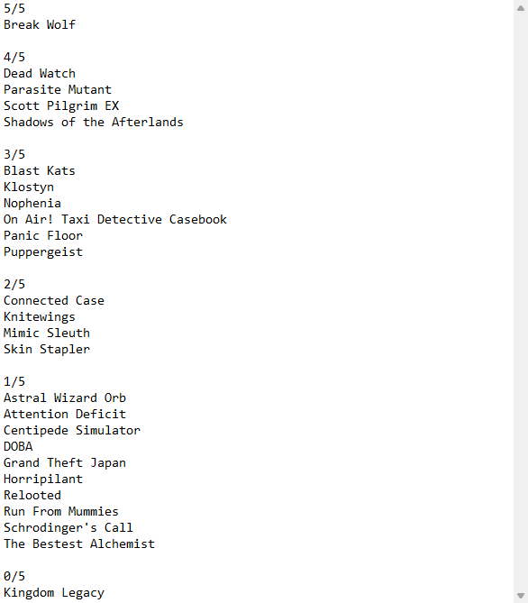 Not a single good game.