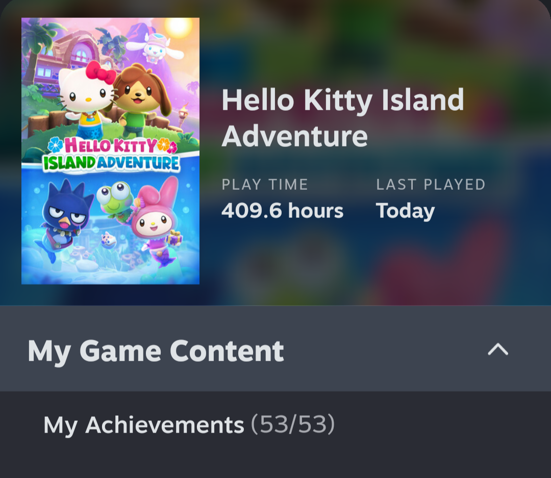 >>733598205I play this. It's fun but you should be aware that once you complete the main story, what's left a pretty slow drip of content (but it is there) and seasonal eventsa great relaxation game overall>>733601730there are some unreasonably good sanrio gamestheir NES and SNES output was strangely solid, with Keroppi getting some good games like a bomberman clone, Hello Kitty getting the sequel to Balloon Fight (literally a reskin and NES port of Balloon Kid), Sanrio Smashball, etcin gen 6 we got Hello Kitty Roller Rescue, in which HK is a rollerblading magical girl fighting aliens (it's just a teensy bit jank but the charm far outweighs it)