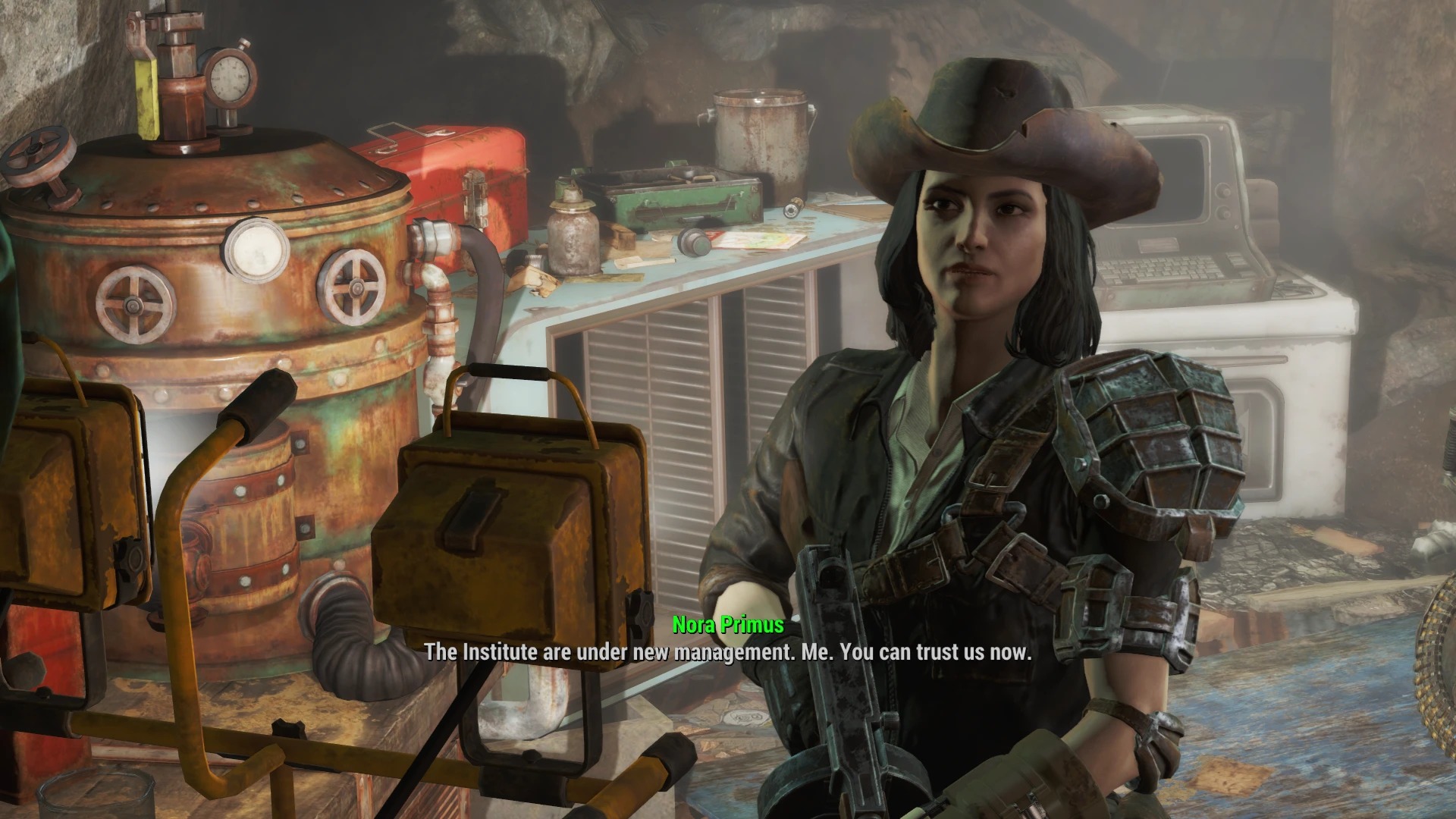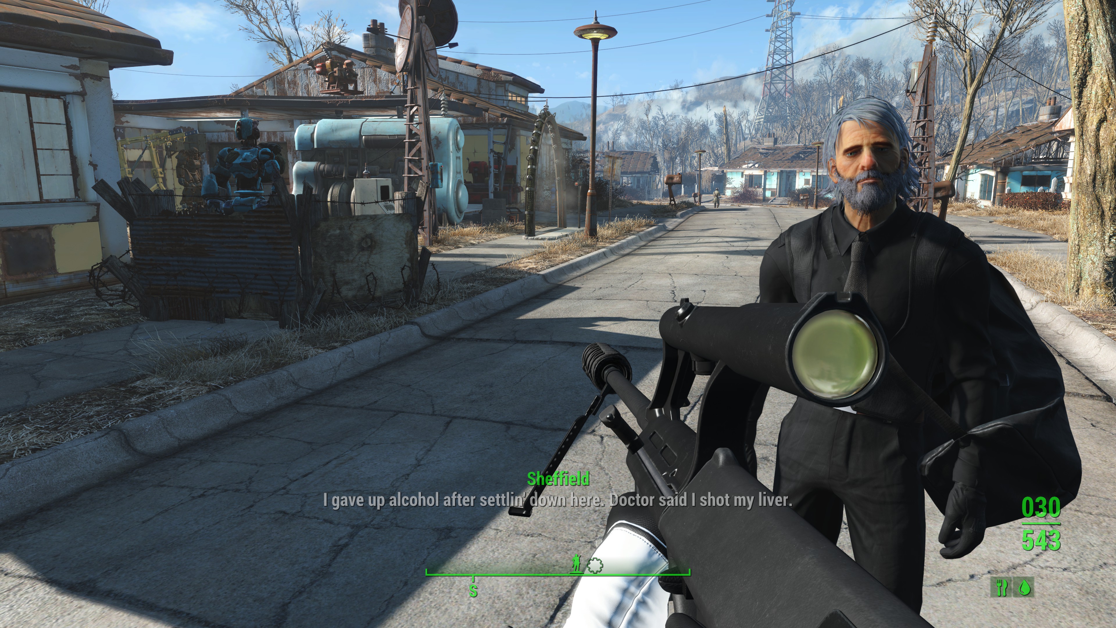 >Oh great look at that; levelled loot. Great. Fantastic. Everywhere I go I maintain the same relative power level, except in the few places where there's no levelled enemies. Yes I will be conscious of this the whole time. This is definitely not the videogame gameplay equivalent of "seeing the strings" in old movies. So goofy and fun! >Oh cool. Another randomly-generated "legendary"-rarity item that gives me +1 to VATs aim while it's raining and the sun is at the 14th meridian while standing still and listening to the radio and fighting at least one deathclaw. Nice! I'll throw it on the pile; it can go nicely in-between the armour that gives me a bonus to my fire resistance while swimming and the gun that does an additional 1 point of radiation damage to ghouls. >Ah of course; the Mass Effect-style dialogue tree, but without any of the nuance and elaborate conversation trees. Very very nice. Everything I say is rail-roaded, all I get to do is choose the tone of voice in which I agree to everything. So killer! TUBULAR!>An interesting story! They are making advanced artificial intelligences, and putting them in iterative robot bodies that become increasingly lifelike; while collating intelligence on certain random wastelanders, and then creating a robot synthetic version of a given wastelander that is 1 to 1 identical to them in every way! Then, they send the robot to the surface to KILL and replace the person they imitate! It's the perfect plan! Don't you see? It's the only way to ... uhhhh ... --well, um, you see. Um... w- we want to make the world a better place, don't you understand?>Um...
