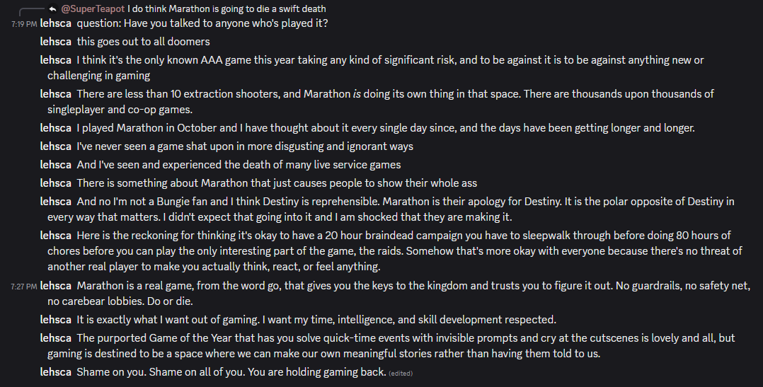 All it takes is one strong soul to come forth and proclaim truth and /v/ crumbles. The truth that Bungie will deliver and that Marathon will save this ass genre and ass multiplayers games.