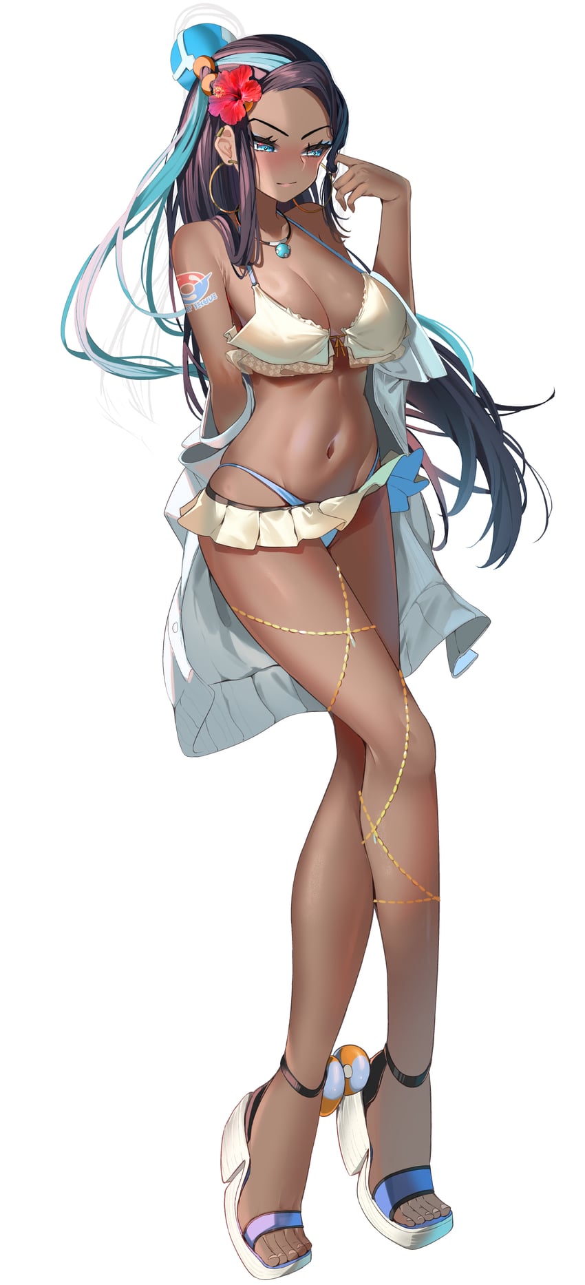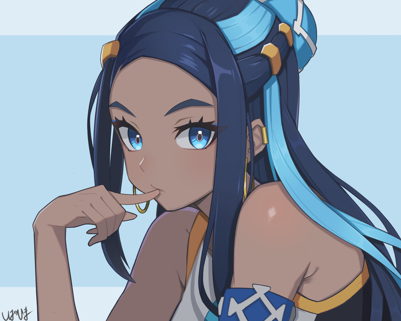 >name in Japanese is "Rurina", associated with Lapis Lazuli>color scheme is blue, water trainer>English name is "Nessa"I still don't get it.