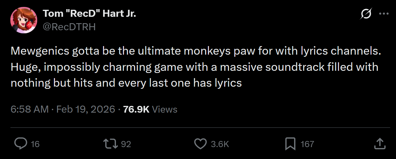 I wonder, does the in-game world work off of Dark Souls rules where the named cats that you kill come back to life somehow after dying, or is only your first run of each area "canonical"?They cant really play off the deaths of specific cats as "knocking them out" or whatever since you can blow their corpse up lol