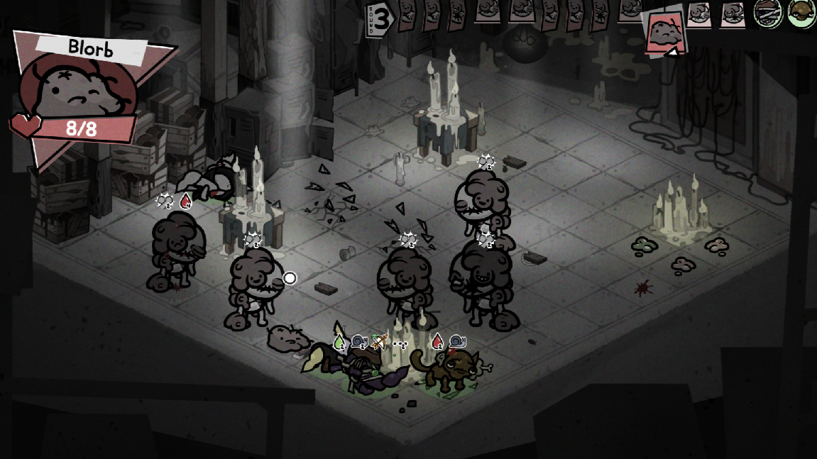 >Collarless Party>Had a cat with the passive that had "When downed, All allies gain 12 hp, or 12 armor if full hp">Give him everstone and a uranium rod so he has 1 hp>My other two cats have res skills>strategy becoming the two cats chain beating and ressing him for massive overhealing>last cat focused on spider summoning>could poop and then break it for easy spiders>Fill up the map with spiders that gain 24 armor every round>Sadly my sacrificial cat died because when they spiders couldn't path to the final boss they instead infested his body and blew him up