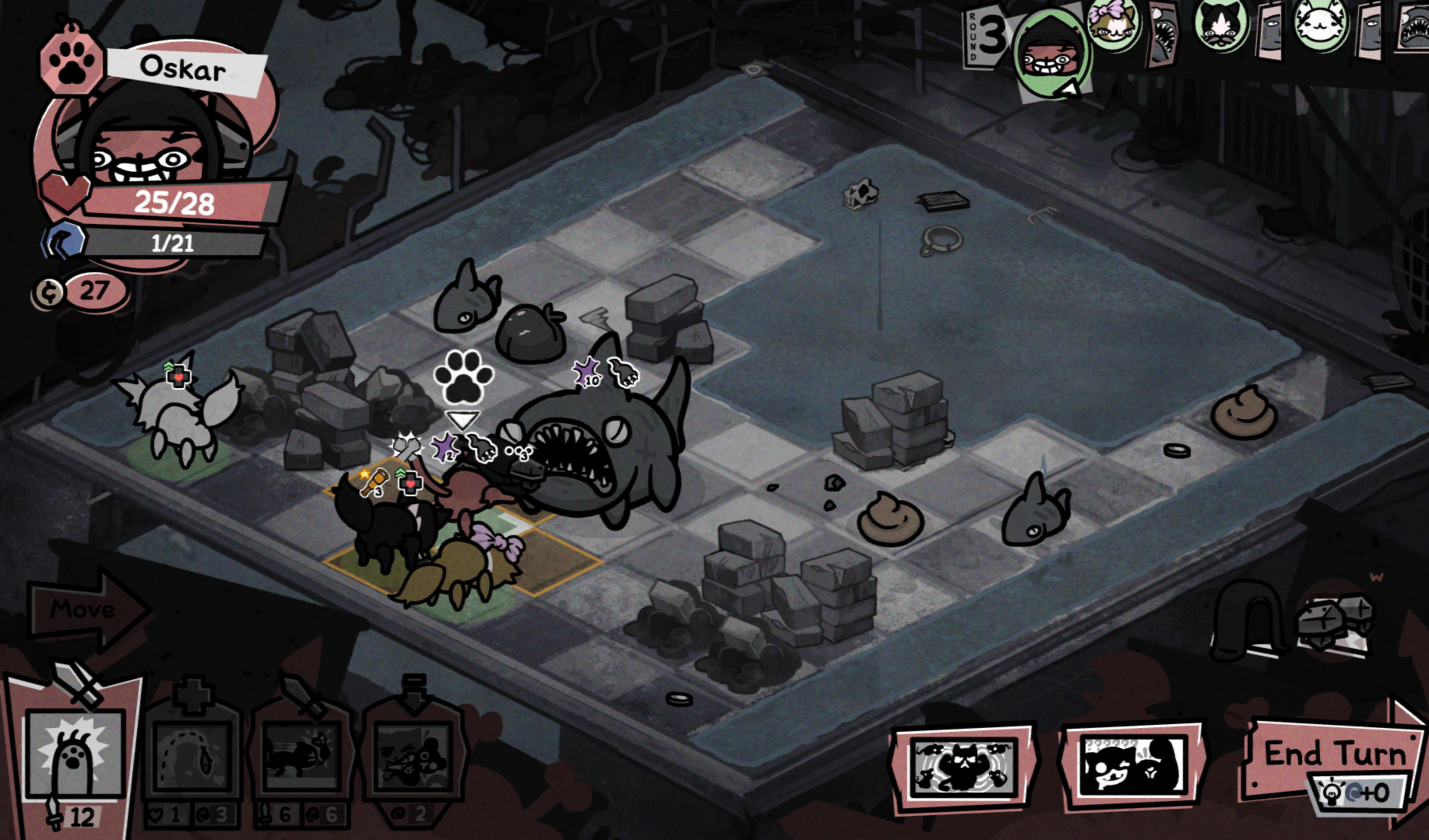 >>733618418No anon, you're not getting it.If you know:>This shark will move one tile on its turn - and where the danger zones will be on that turnand>This shark will two turns before your cat's next turnWhy would you leave your cat only one tile outside of the range the game shows?