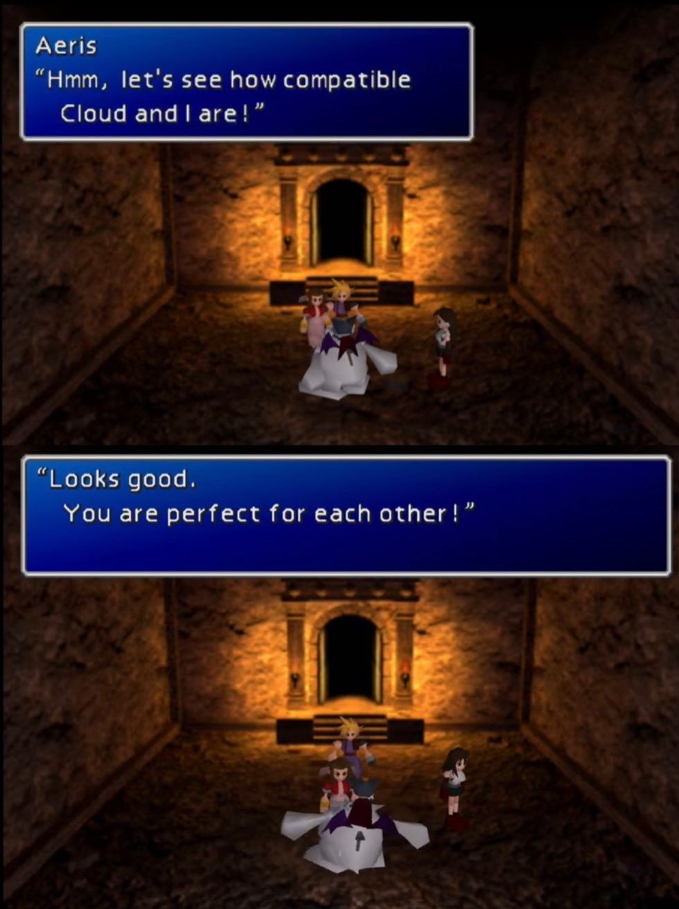 >>733645752didn't this really mean aerith was perfect for zack since cloud thought he was zack or some shit