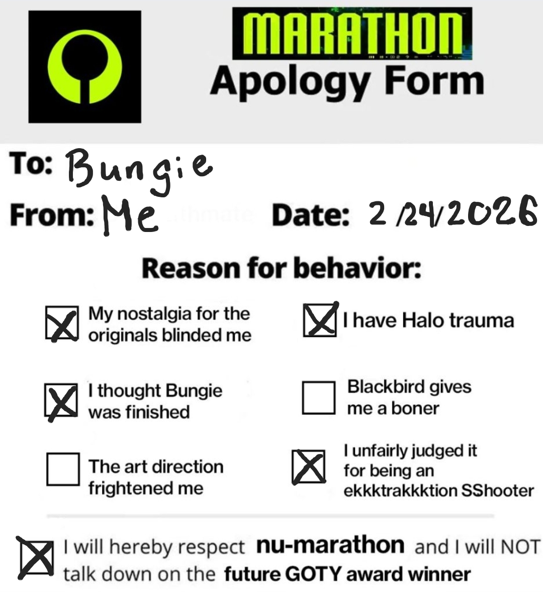 WTF OP!!!! This just convinced me to purchase Marathon™ the upcoming first-person shooter video game developed and published by Bungie!I am currently entering my credit card information into the purchase form on my Steam™ account! I cannot wait to be a Marathoner! I am also joining the Discord channel to discuss the upcoming video game with my fellow Marathoner fans!